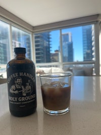 Bold, smooth, and deeply roasted. Holy Ground is a rich dark roast cold brew concentrate with low acidity and a full-bodied finish. Crafted for early mornings and long days — a brew that keeps you steady and grounded in purpose.